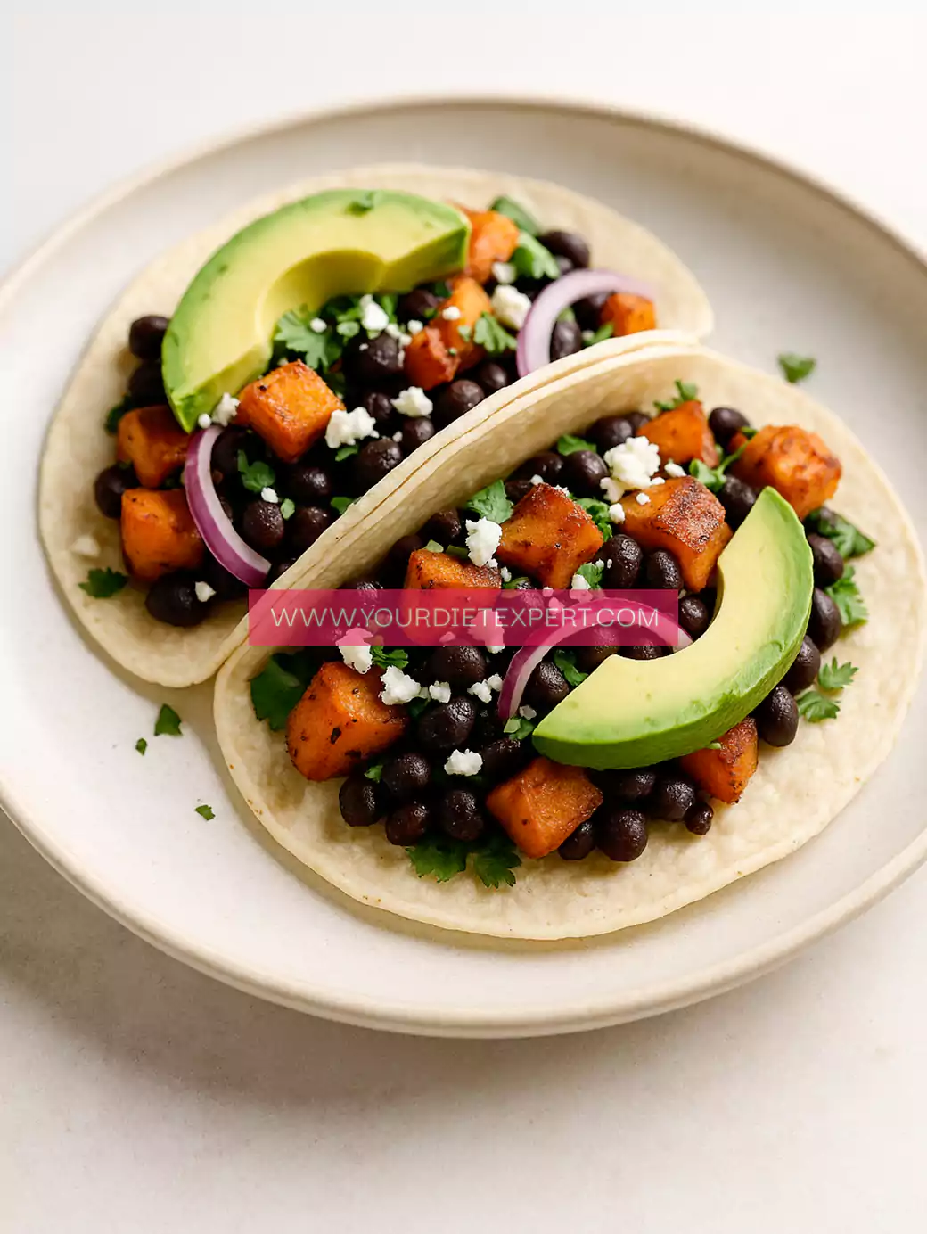 - Warm tortillas, spread avocado, top with beans and roasted sweet potato.
