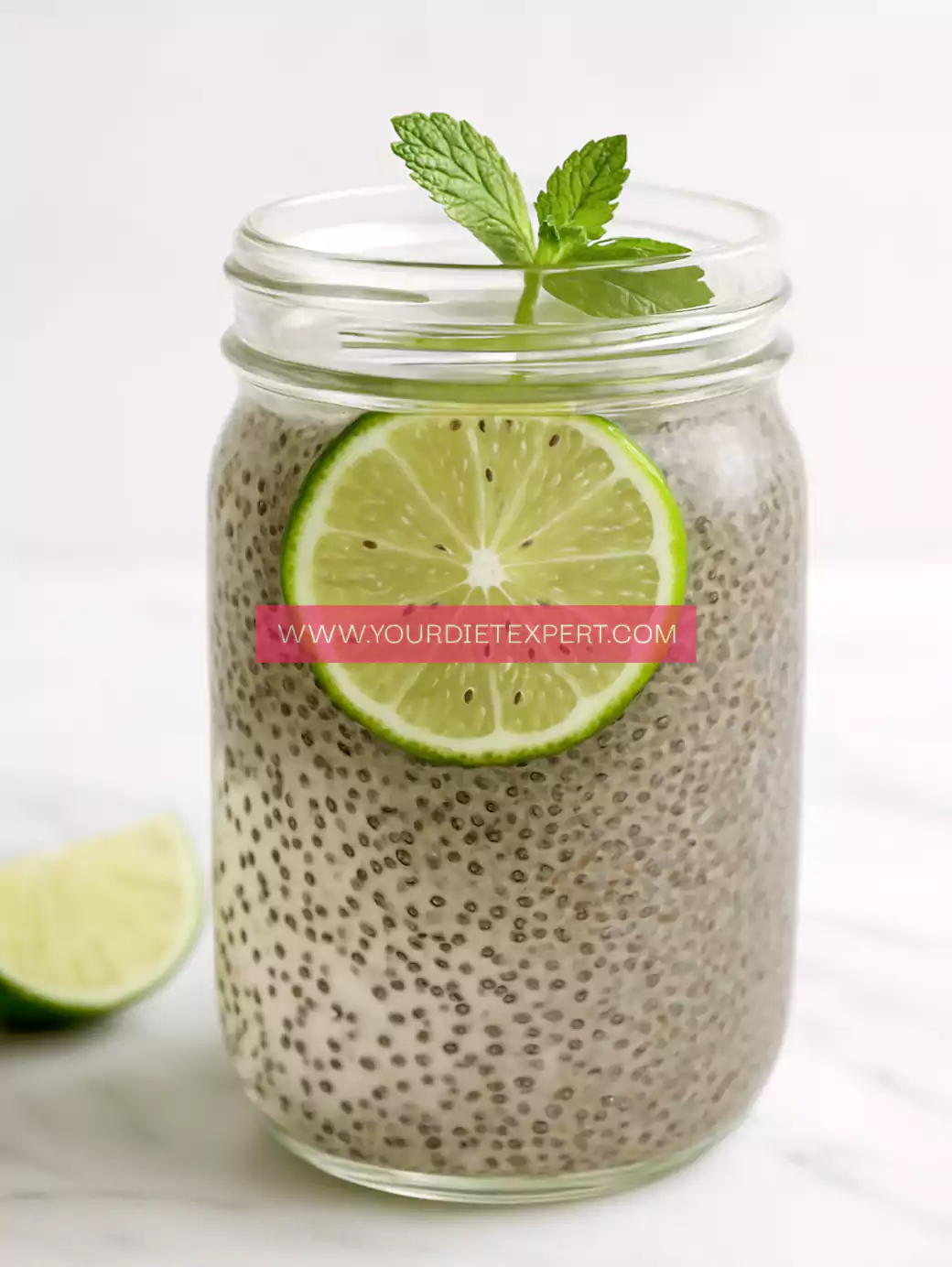 Chia seeds expand in water, forming a gel-like texture that supports hydration and gut motility. Lime adds vitamin C and antioxidants to promote a natural glow.