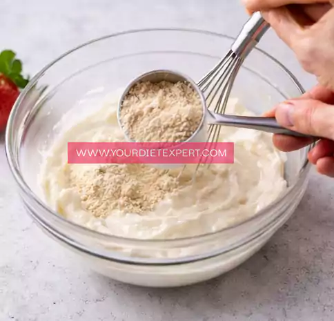 Start by adding Greek yogurt into a mixing bowl. Gradually incorporate the protein powder while whisking gently. This prevents clumps and ensures a smooth consistency.