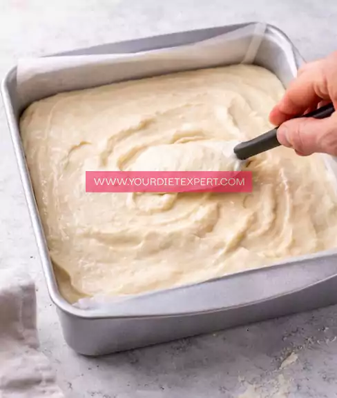 - Transfer the batter into the prepared dish and use a spatula to spread it evenly. Take a moment to smooth the top — this helps the cake bake uniformly and gives it a better final appearance.