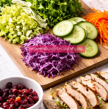 - Take a large mixing bowl and add the prepared greens, sliced vegetables, dried cranberries, and the sliced chicken. Gently toss everything together so the ingredients are evenly distributed without crushing the delicate components.