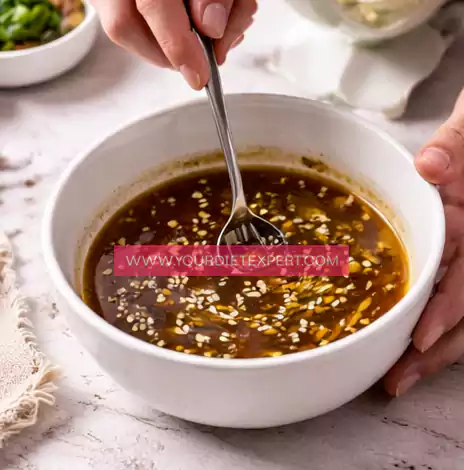 - In a small mixing bowl, add olive oil, soy sauce, honey, lemon juice, and minced garlic. Use a spoon or whisk to mix everything together until the dressing is smooth and well combined, with the flavors evenly blended.