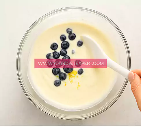 - If you want to boost the flavor, gently stir in optional add-ins like lemon zest, blueberries, or crushed graham-style protein crumbs. Fold them in with a spatula instead of blending so the texture stays thick and smooth.