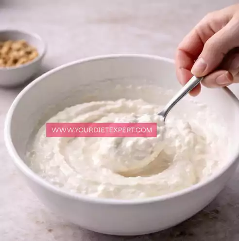 Taste the base at this stage. If your protein powder is lightly sweetened, additional sweetener usually isn’t needed. If desired, a small amount of honey or calorie-free sweetener can be added, but keep it subtle.