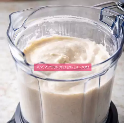 - Blend on high speed until the mixture becomes completely smooth and creamy, stopping once or twice to scrape down the sides and bottom of the blender so no lumps remain. Continue blending until the texture looks glossy and thick, similar to soft-serve ice cream.