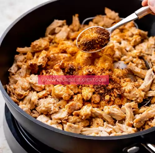 Start by heating a skillet over medium heat and lightly coating it with oil. Add the diced or shredded chicken, allowing it to warm through before seasoning. This step helps the spices adhere evenly and prevents dryness.
