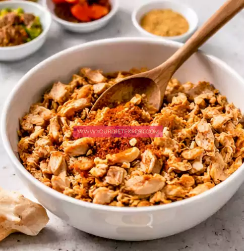 - Cook and shred the chicken breast, ensuring it remains juicy and tender for the best texture.
