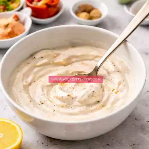 - In a bowl, prepare the sauce by combining Greek yogurt with a pinch of salt and optional spices, stirring until smooth and creamy.