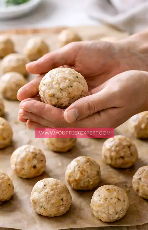 Take small portions of the mixture and roll them into evenly sized balls. Keeping them uniform ensures even cooking.