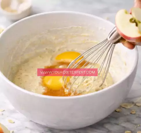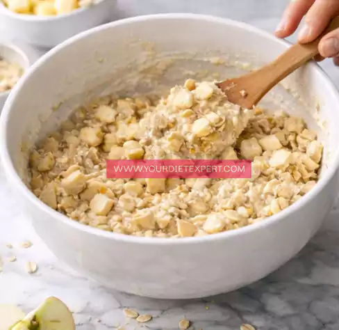 - Gently fold in the diced apples, stirring just enough to distribute them evenly throughout the batter without breaking them down. This helps keep small apple pieces intact so they add natural sweetness and texture in every bite.