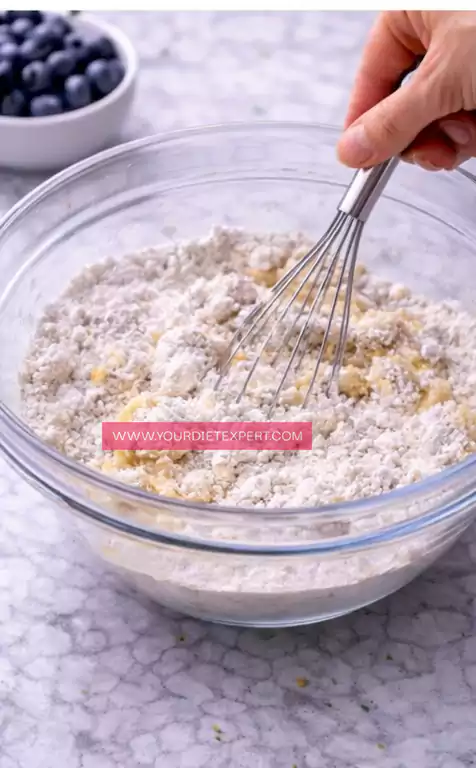 In a separate bowl, combine flour, leavening agents, and salt. Mixing dry ingredients separately ensures even distribution and proper rise.