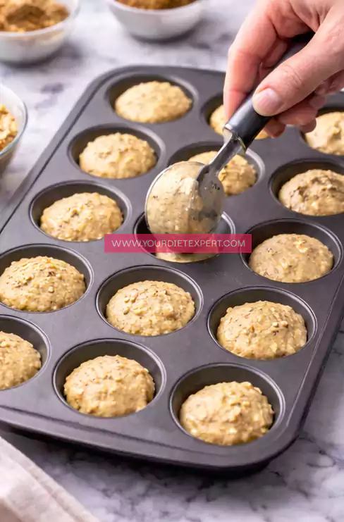 Pour the batter into a bowl and let it rest for 5 minutes. This allows the oats to absorb moisture, improving texture and preventing a gummy center after baking.