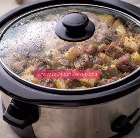 - Cover the crockpot with the lid and cook on low heat for 6–7 hours or on high heat for 3–4 hours, until the potatoes are fork-tender and the steak is very soft. Avoid lifting the lid too often, as this releases heat and can slow down the cooking process.