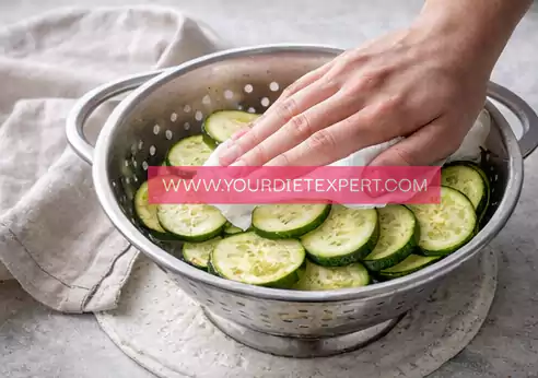 - Place sliced zucchini in a colander, sprinkle lightly with salt, and let sit for 10–15 minutes, then pat dry thoroughly.