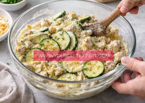 Zucchini provides volume and moisture with minimal net carbs, while healthy fats from cheese and yogurt keep the dish satisfying. The result is a macro-friendly recipe that fits keto, low-carb, and protein-forward eating styles.