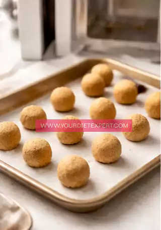 - Scoop small portions of the dough and gently roll them between your palms to form evenly sized balls. Try to keep them uniform so they chill and set evenly. Place each ball onto a tray or plate lined with parchment paper to prevent sticking.