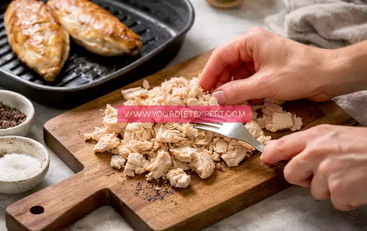 If your chicken isn’t already cooked, gently cook boneless, skinless chicken breast until just done. Allow it to rest briefly, then chop or shred into bite-sized pieces.
