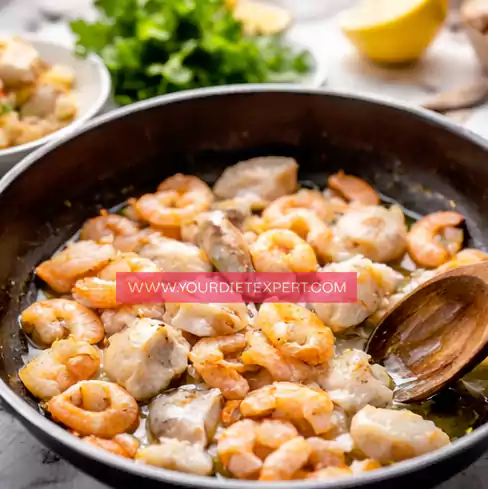 Seafood is naturally rich in high-quality protein. Combined with yogurt-based sauce elements, this dish becomes a powerful muscle-building meal.