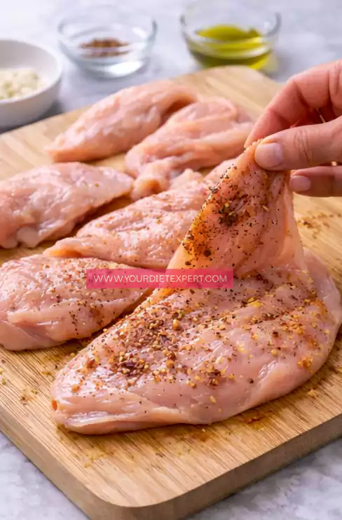 Slice the chicken evenly so it cooks at the same rate. Uneven pieces can lead to dryness or undercooking.