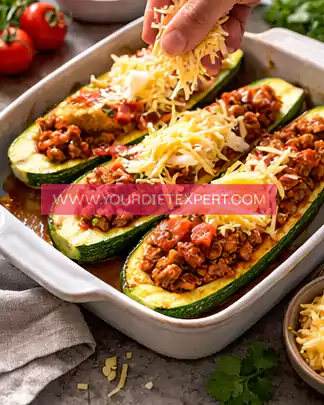 - Sprinkle shredded cheese generously over the top of each filled zucchini boat. Return the baking dish to the oven and bake for another 10–15 minutes, or until the cheese is fully melted, slightly golden, and bubbly.
