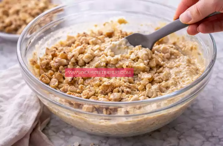 - Fold in the chopped walnuts evenly, making sure they are well distributed throughout the batter for balanced texture and flavor in every slice.