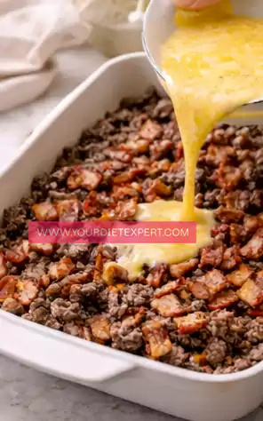 With protein from beef and bacon and fats from cheese, this casserole keeps you full for hours. It’s the kind of meal that actually stops cravings instead of triggering them.
