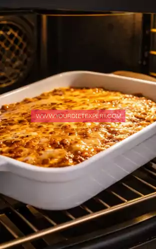 Place the baking dish into a preheated oven and bake until the center is fully set and the top is lightly golden. You’ll know it’s ready when the casserole no longer jiggles in the middle and the edges look slightly crisp.
