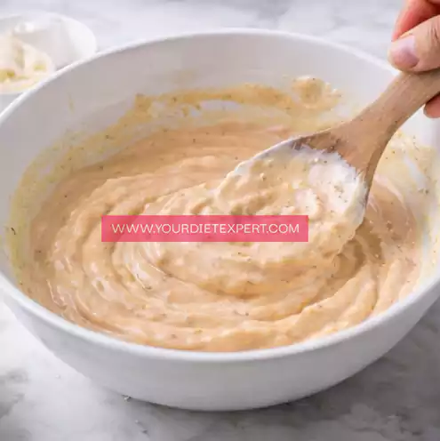 In a mixing bowl, whisk together the sauce ingredients until smooth and creamy. Taste and adjust seasoning as needed, aiming for a balance of tangy, savory, and slightly sweet.