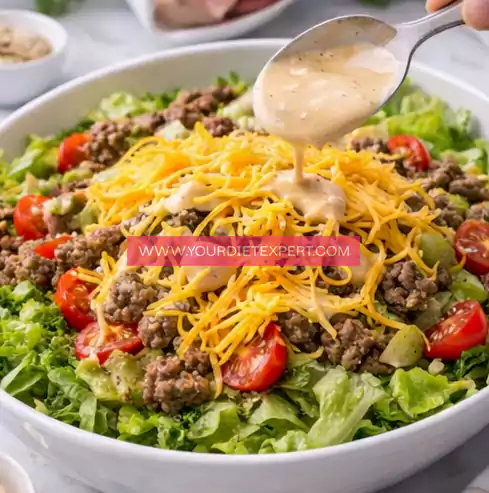 This Keto Big Mac Salad works exceptionally well for low-carb and keto lifestyles because it prioritizes protein, healthy fats, and fiber-rich vegetables while eliminating refined carbohydrates. The ground beef provides high-quality protein that supports muscle maintenance and keeps you full for longer periods, making this meal especially beneficial for fitness-focused readers.