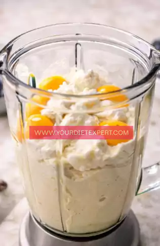 - Add the cottage cheese, eggs, sweetener, vanilla extract, baking powder, and salt to a blender. Blend until the mixture is completely smooth and creamy, with no visible curds remaining, as this ensures a soft and even texture once baked.