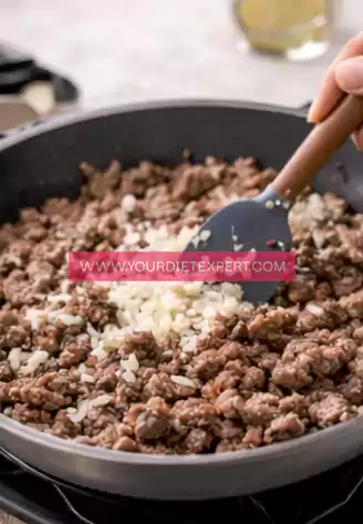 - Add the finely chopped onion directly into the skillet with the cooked meat. Stir and cook for a few minutes until the onion softens and becomes lightly translucent, allowing its natural sweetness to balance the savory meat.