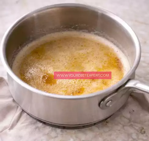 In a saucepan, melt the butter over low to medium heat. Allow it to cook gently until it develops a light golden color and nutty aroma. Remove from heat immediately to prevent burning.