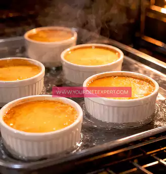 - Transfer the tray to a preheated oven at 160°C (320°F). Bake for 40–50 minutes. Avoid opening the oven too often. The flan is ready when the edges are set but the center still has a slight jiggle when gently shaken. This indicates a perfectly creamy texture.