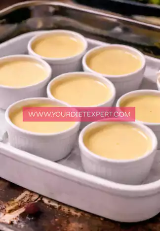- Carefully pour the custard into individual ramekins, filling them almost to the top. Place the filled ramekins into a deep baking dish, making sure they are spaced evenly and not touching each other.