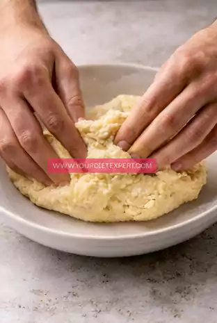 - Transfer the dough onto a clean surface or keep it in the bowl and knead it gently using your hands. Work it for a minute or two until it becomes smooth, soft, and uniform. If it feels too sticky, lightly wet your hands or add a small amount of almond flour.