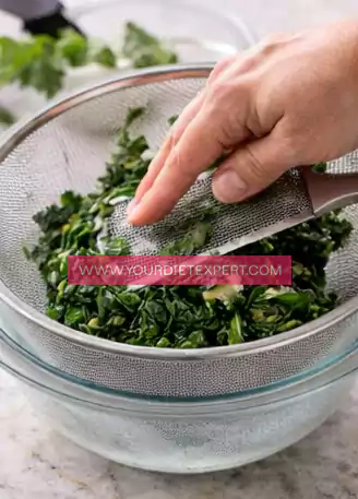 - Wash the spinach thoroughly and sauté it in a pan just until wilted, then transfer to a strainer and press firmly to remove all excess moisture.