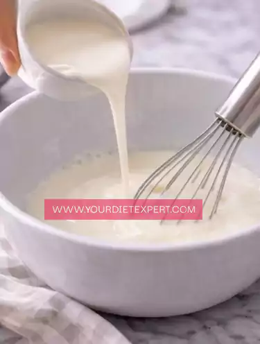 Start by pouring the heavy cream into a mixing bowl. Whisk gently to loosen it slightly, which helps the other ingredients blend more smoothly.