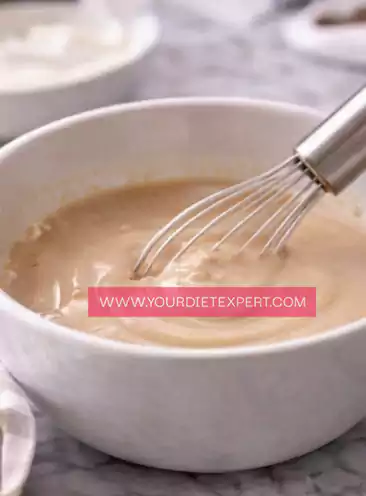 - Sprinkle in the powdered sweetener, vanilla extract, and pudding thickener. Whisk steadily until everything is fully incorporated and the mixture begins to thicken. The texture should become smooth, glossy, and spoonable — thick enough to hold its shape, but still creamy and fluid.