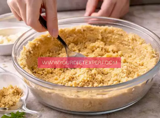 Once pressed firmly into the dish, the crust is baked briefly to set its structure. This prevents sogginess once the filling is added and gives the pie a more traditional dessert feel.