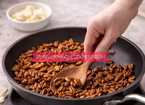 Toasting the pecans may feel optional, but it’s one of the most important flavor-building steps. Gently heating them in a dry skillet releases their natural oils and intensifies their nutty aroma.