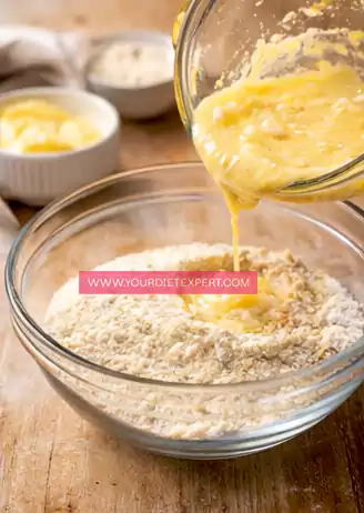 - Gradually pour the wet mixture into the dry ingredients while gently folding with a spatula until a thick dough forms.