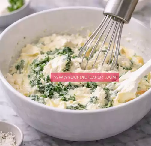 A large mixing bowl gives you space to whisk the eggs thoroughly and fold in the ricotta and spinach without spilling. Proper mixing ensures a smooth, even texture.