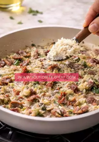 Some recipes feel like a quiet escape, even when you’re standing in your own kitchen. The first time I made Keto Tuscan Shrimp Orzo (Creamy Low-Carb Italian Dinner), it was one of those evenings where I wanted comfort without heaviness — something rich, warm, and satisfying, but still aligned with eating clean and staying low-carb. I remember the smell of garlic and herbs filling the kitchen, the shrimp gently sizzling, and that moment when the sauce turned perfectly creamy without relying on traditional pasta or flour.