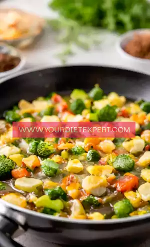 - Add your chopped vegetables into the skillet and spread them out evenly. Let them sauté for about 5–7 minutes, stirring occasionally. You’re aiming for slightly softened vegetables with a bit of bite left—they should not be fully cooked at this stage, as they will continue cooking in the oven.