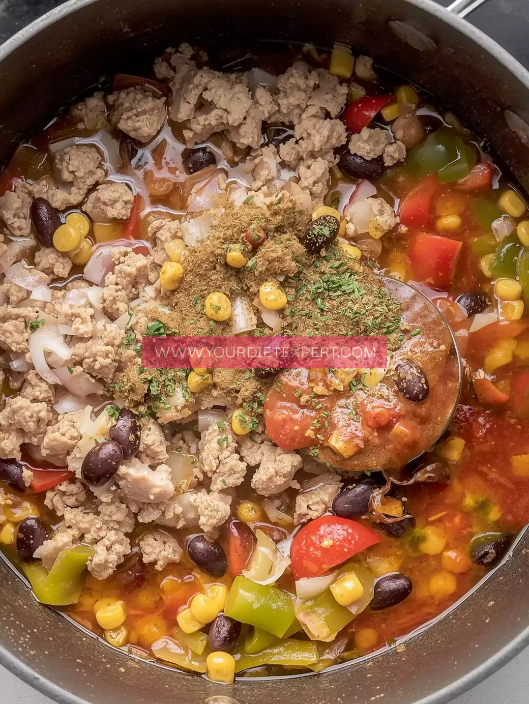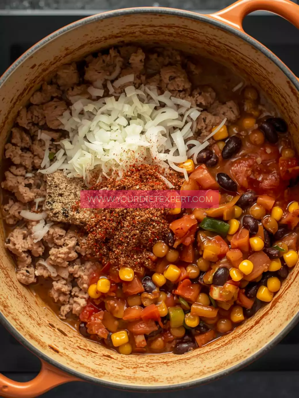 Heat your pot over medium heat. Add the ground turkey and cook until browned, breaking it up with your spoon. Drain excess liquid if needed.